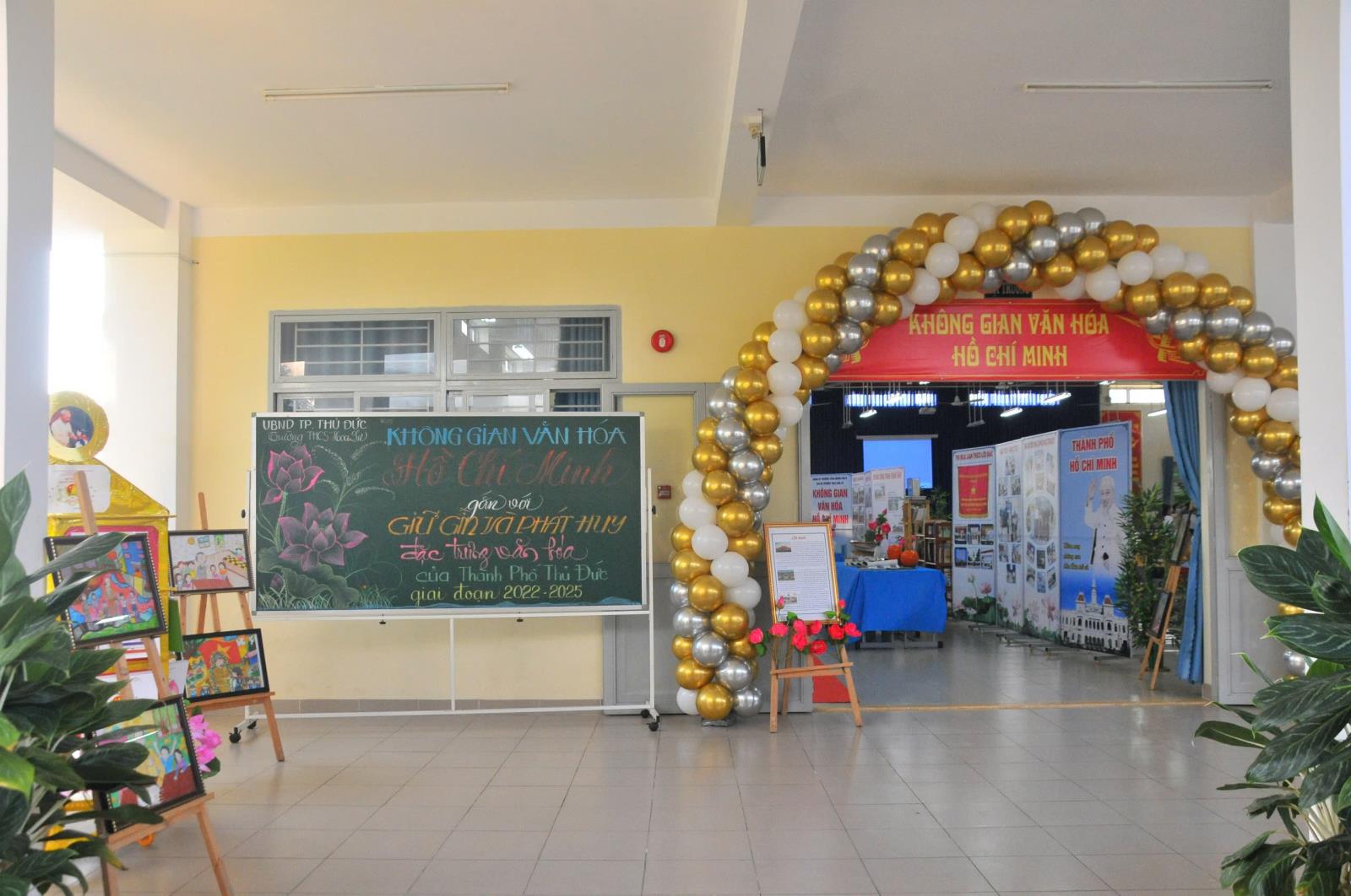 “Không gian văn hóa Hồ Chí Minh” được xây dựng tại hội trường trường THCS Hoa Lư, với không gian trưng bày nhiều tư liệu, sách, ảnh về cuộc đời, sự nghiệp hoạt động cách mạng của Chủ tịch Hồ Chí Minh; giới thiệu về các di sản văn hóa, địa danh lâu đời có giá trị lịch sử với 7 di tích lịch sử cấp Quốc gia và 16 di tích được công nhận cấp TPHCM. Đây là một trong những cách thức đơn giản, hiệu quả nhằm giáo dục, giúp học sinh hiểu hơn về thành phố Hồ Chí Minh - thành phố mà các em đang sống, hiểu hơn những câu chuyện về Bác gắn với Thành phố, thích thú hơn với các bài học lịch sử, đặc biệt là các câu chuyện “Học tập và làm theo tư tưởng, đạo đức, phong cách Hồ Chí Minh”. Bằng những hình thức trực quan, sinh động, gần gũi, dễ hiểu, không gian văn hóa Hồ Chí Minh từng bước giúp học sinh hiểu thêm và trân trọng những giá trị lịch sử của thành phố mang tên Bác Hồ kính yêu.