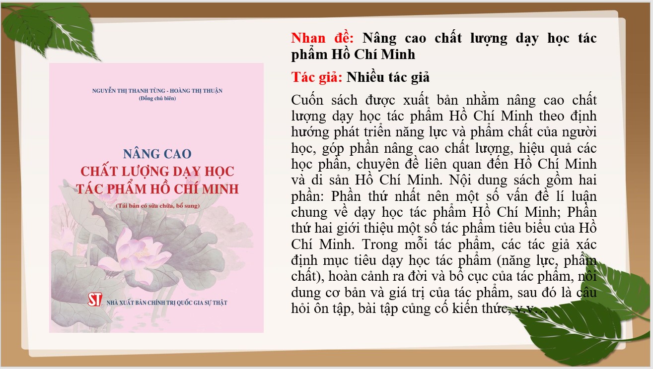 Giới thiệu cuốn sách "Nâng cao chất lượng dạy học tác phẩm Hồ Chí Minh"