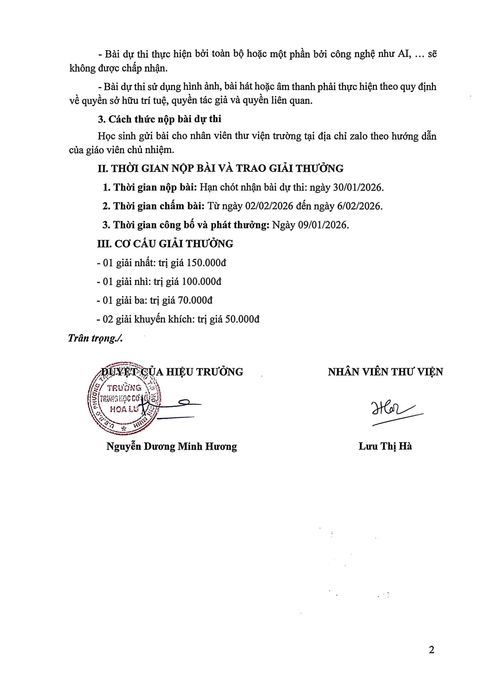 Lịch Làm việc Thư viện - Trường THCS Hoa Lư, NH 2025-2026