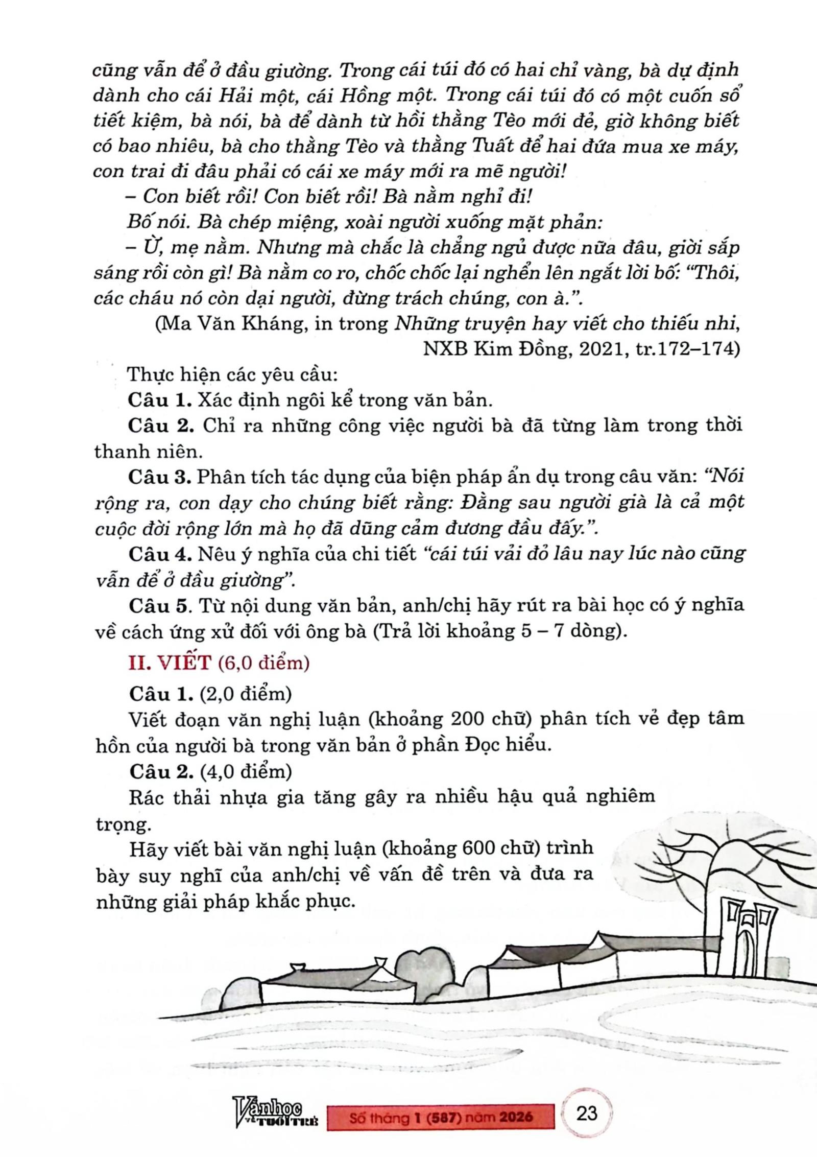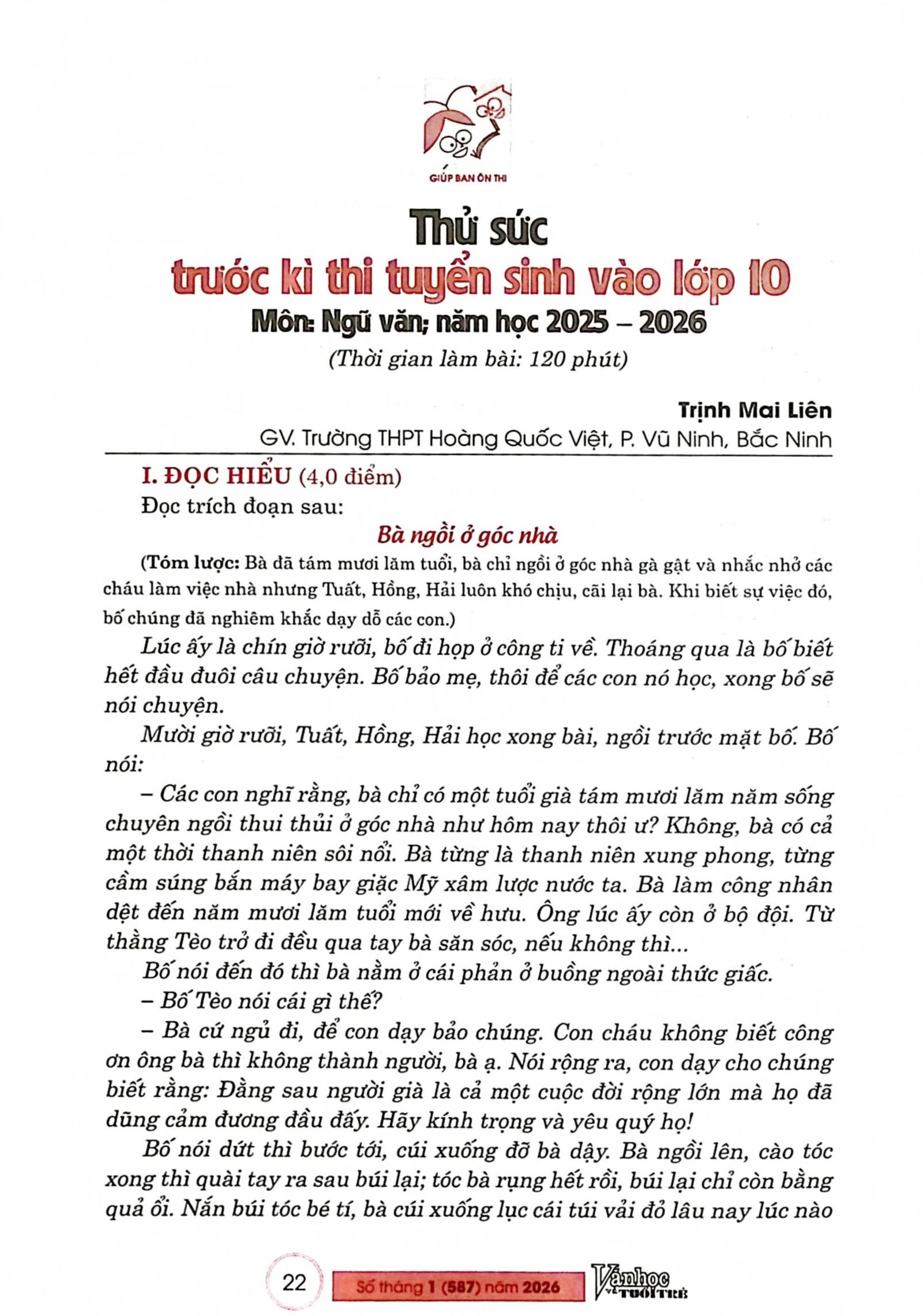 Bài trích tạp chí “Thử sức trước kì thi tuyển sinh vào lớp 10 Môn Ngữ văn, năm học 2025 - 2026”, Số tháng 1-2026